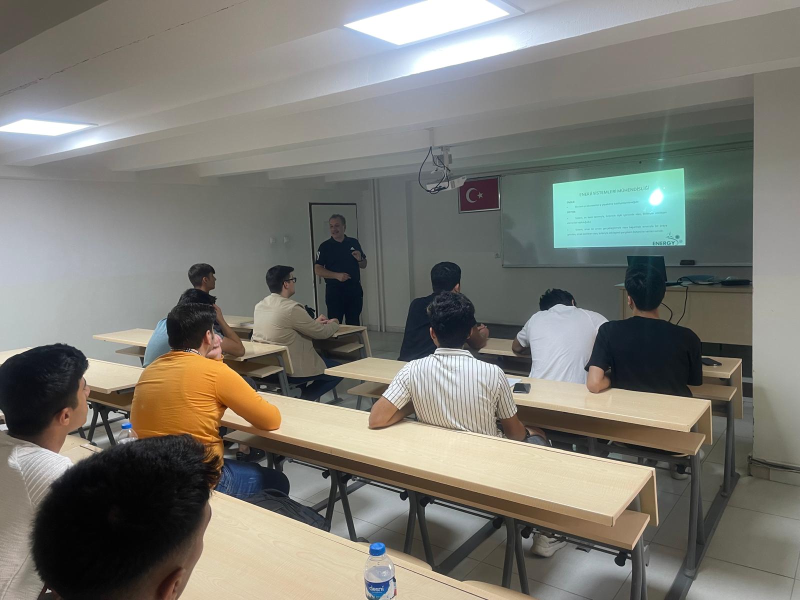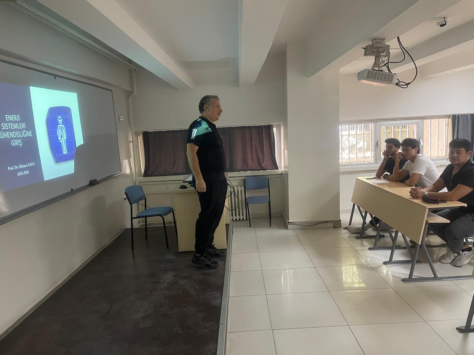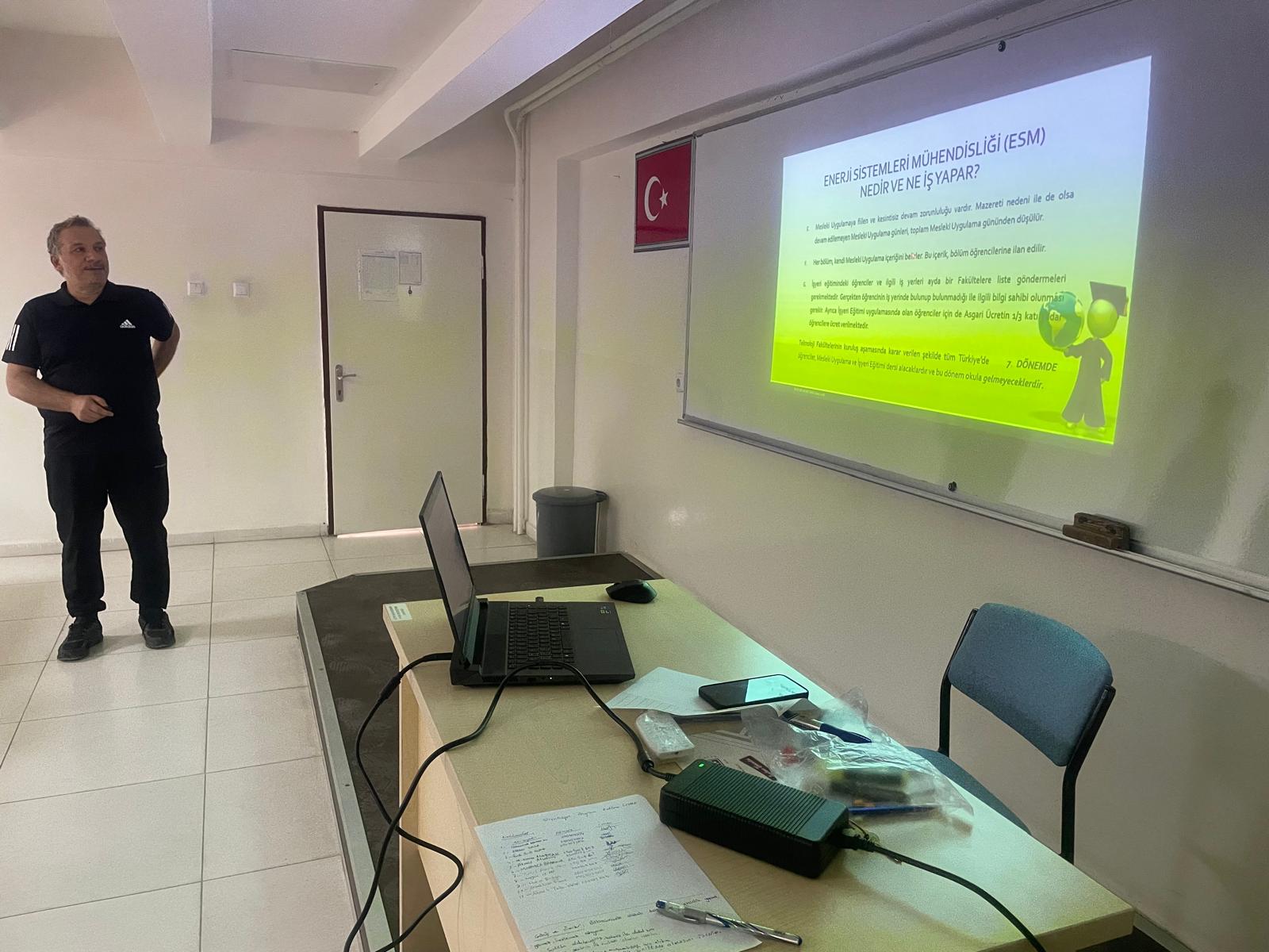 Oryantasyon programı, bölüm öğrencilerinin üniversite yaşamına uyum sağlamaları, bölümün akademik ve idari yapısını yakından tanımaları amacıyla düzenlendi. Oryantasyon etkinliği, bölümümüz öğretim üyesi Prof. Dr. Hikmet ESEN’in açılış konuşmasıyla başladı. Prof. Dr. Hikmet ESEN, öğrencilere bölümün vizyonu, misyonu, eğitim hedefleri ve kariyer olanakları hakkında bilgi verdi. Ayrıca enerji sistemleri mühendisliğinin günümüz dünyasındaki önemi ve sürdürülebilir enerji teknolojilerinin gelecekteki rolü üzerine değerli paylaşımlarda bulundu.